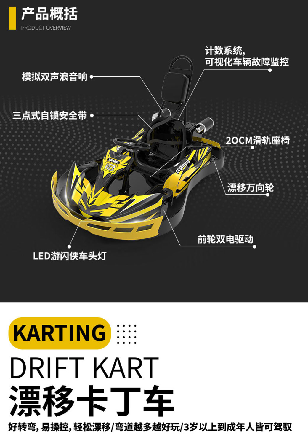 前轮驱动+漂移后轮,好操控易漂移。